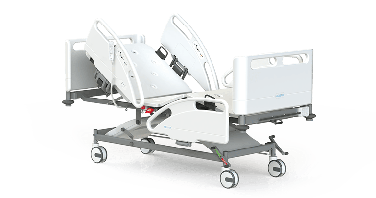 • Surrounding split side rails with inset controls for patient and nurse
